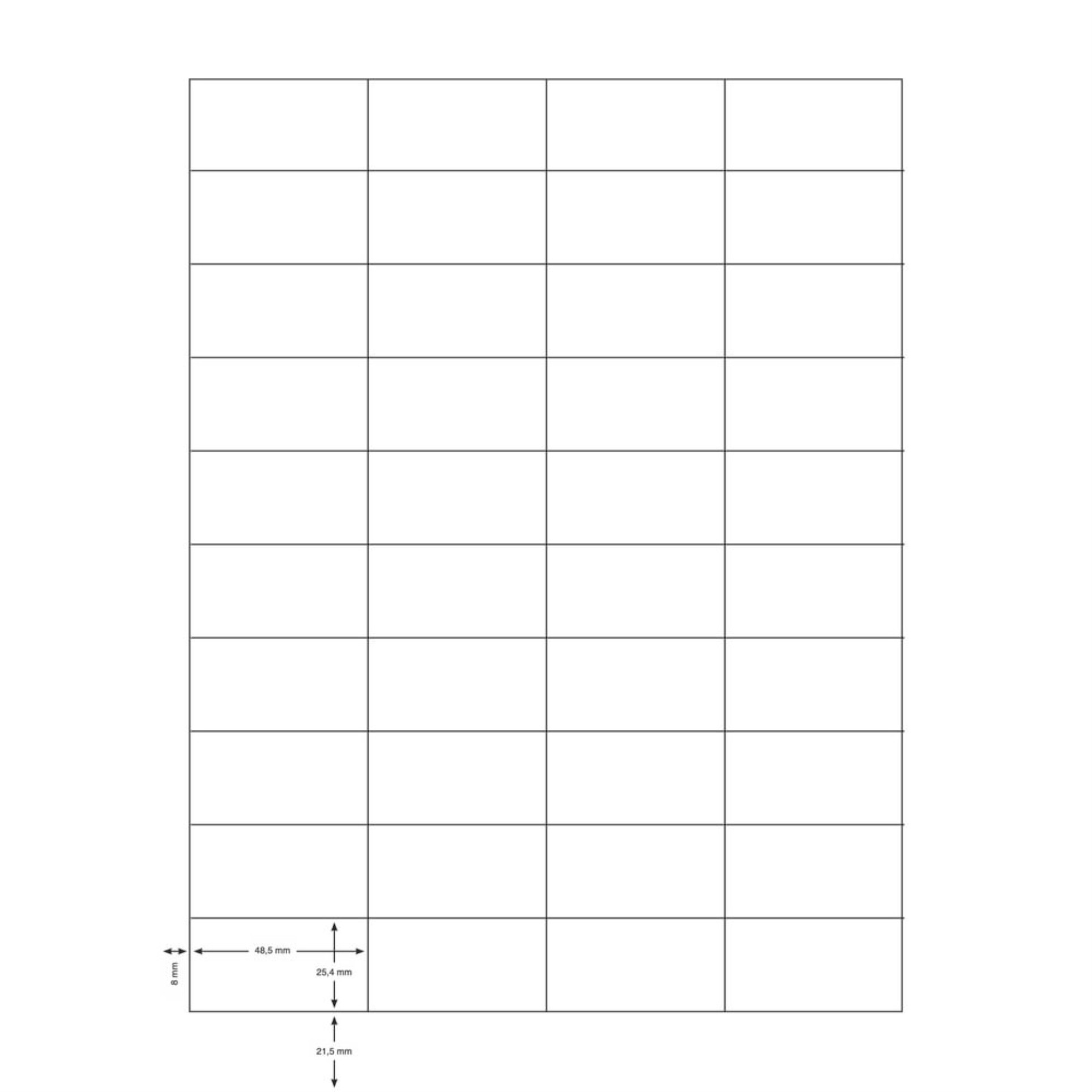 Bílé samolepicí etikety jak pro laserové a inkoustové tiskárny, tak pro kopírky. Formát: A4. Rozměr etikety: 48,5 x 25,4 mm. Celý popis