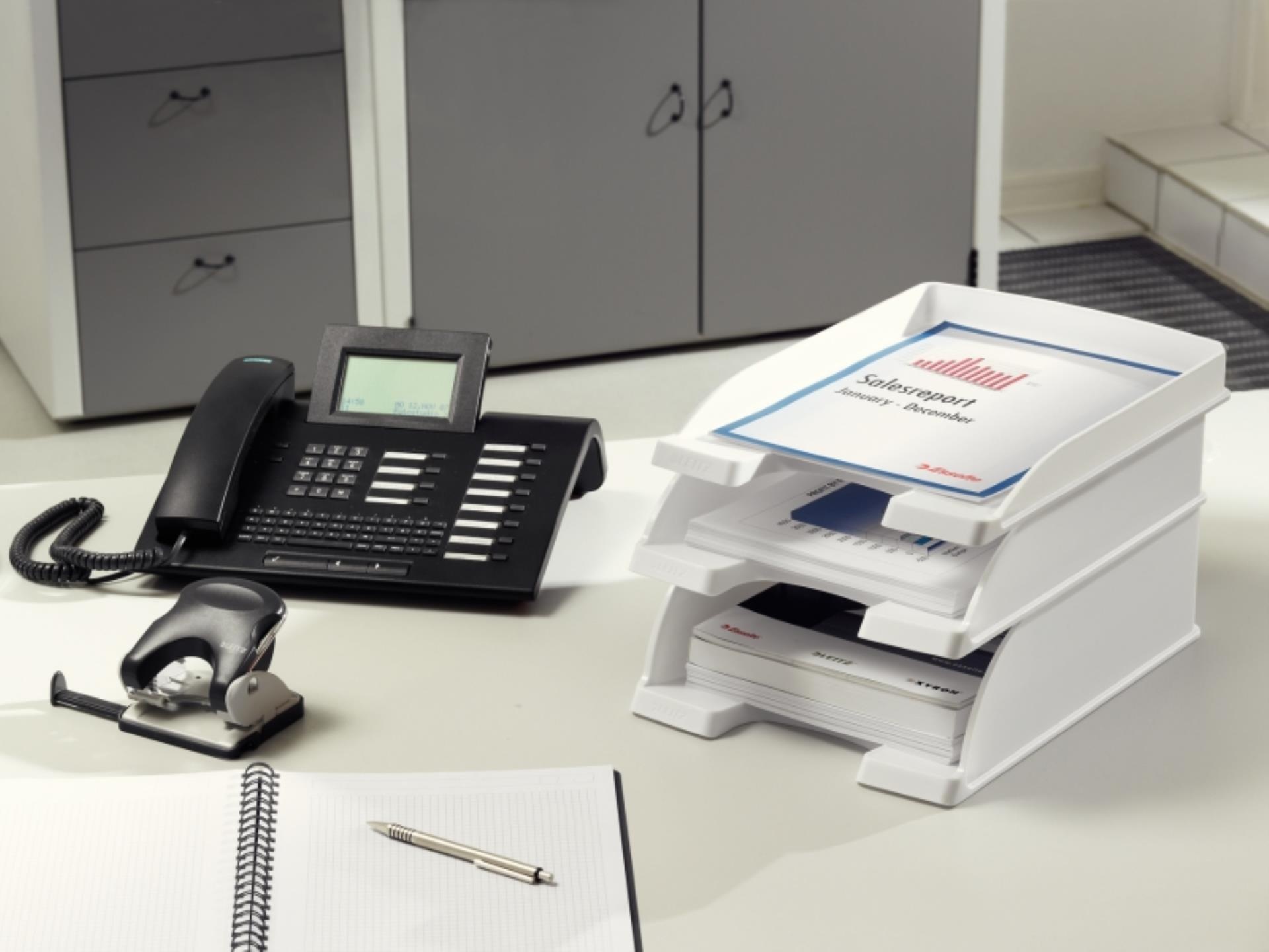 Kvalitní plastová zásuvka se zvýšenou kapacitou a plným dnem pro dokumenty formátu A4; kapacita odkládání 10,0 cm . Výřez pro snadný přístup k uloženým dokumentům . Zásuvku možno stohovat kolmo nebo předsazeně a vzájemně kombinovat ještě i se zásuvkou Leitz Plus . Celý popis