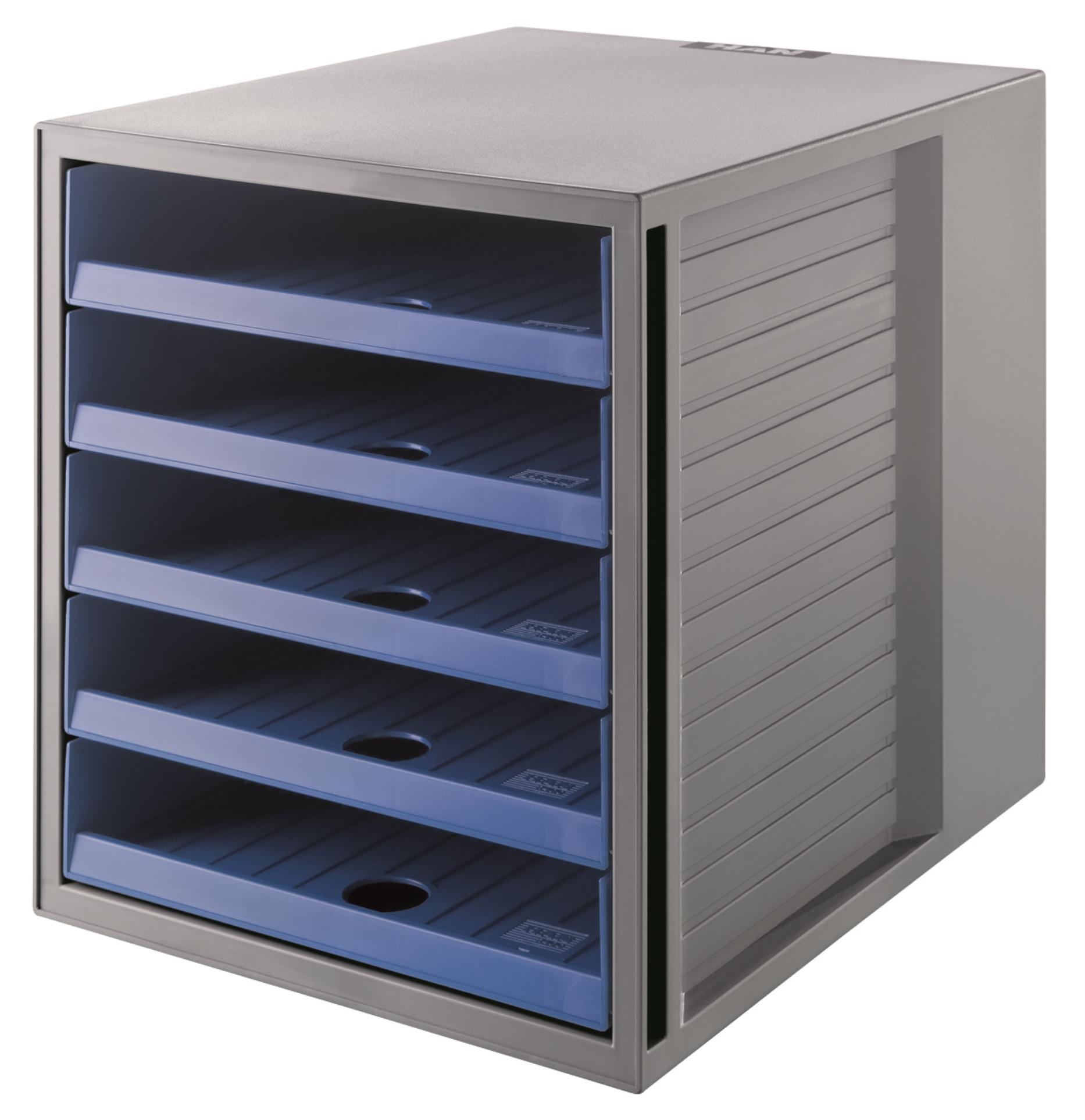Zásuvkový box KARMA s 5 zásuvkami na papír formátu DIN A4 a větší oceněný ekologickým certifikátem "BLUE ANGEL"