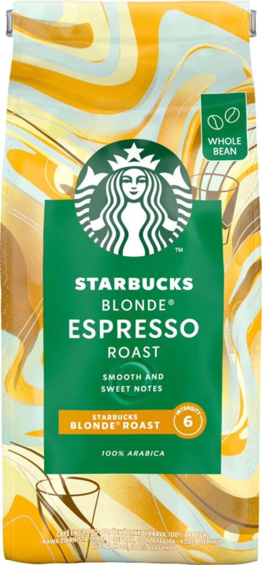 Zrnková káva STARBUCKS Blonde Espresso Roast představuje 100% Arabicu původem z Latinské Ameriky